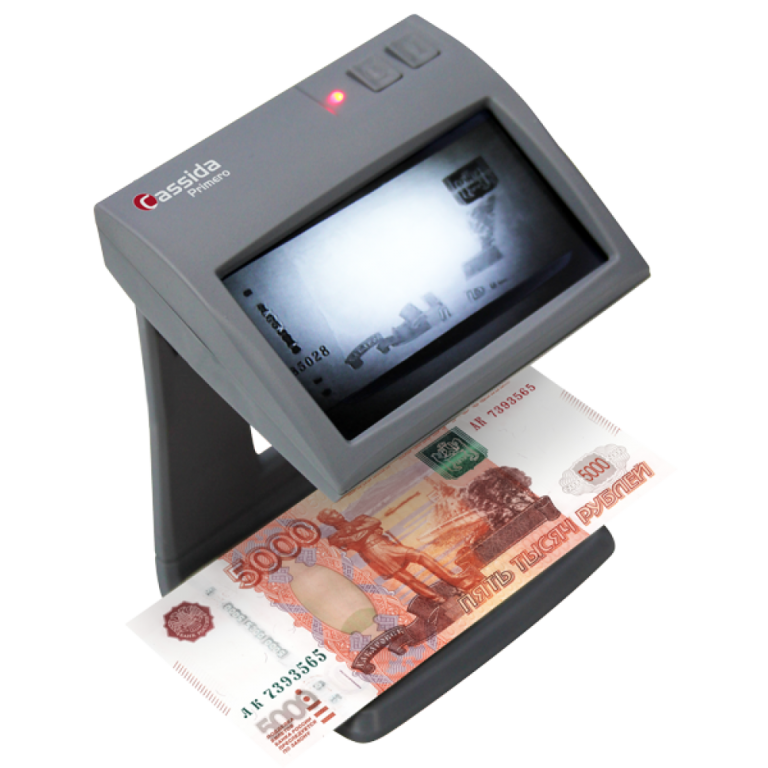 Удобное расположение экрана для экспресс проверки банкнот «веером» как сидя, так и стоя — кассир хорошо видит экран расположенный сверху, не загораживая его самими банкнотами.