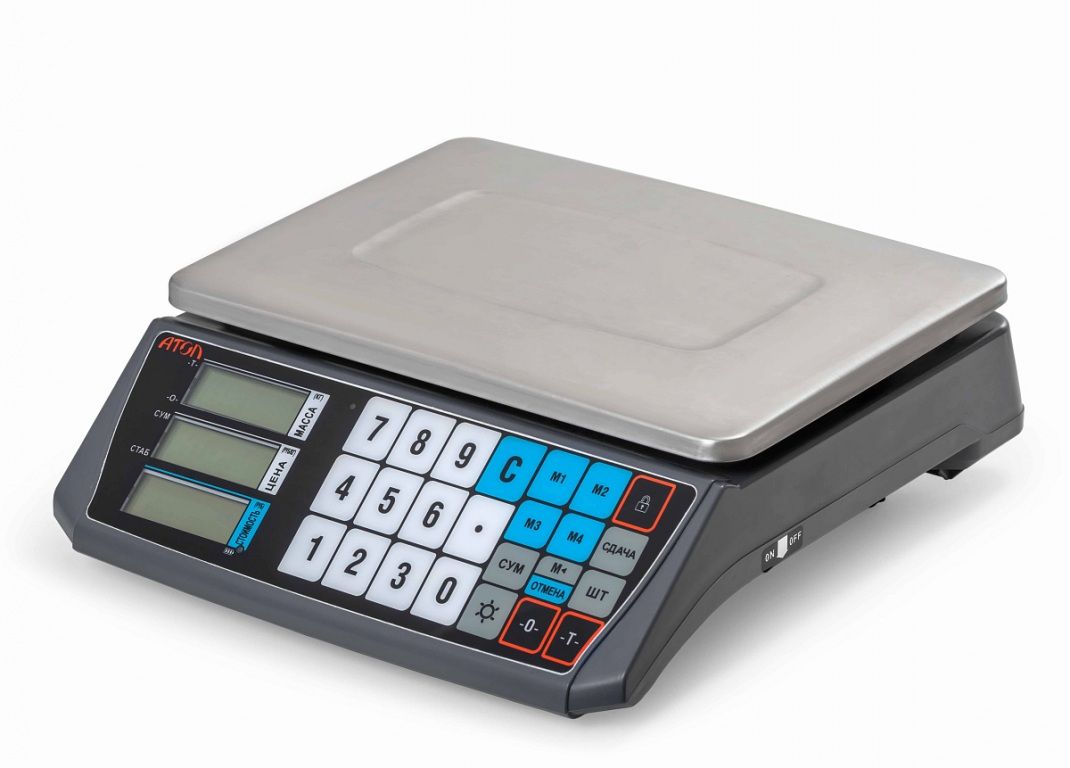 Промышленная сенсорная клавиатура обеспечивает точный ввод данных, устойчивость к износу и дополнительную защиту за счёт влагозащищённой поверхности. Крупные клавиши удобны в работе: каждое нажатие фиксируется быстро и безошибочно. Показания веса хорошо читаются на двух LCD-дисплеях — как при ярком, так и при слабом освещении. Дисплеи расположены со стороны продавца и покупателя, что повышает прозрачность расчётов и доверие клиентов.