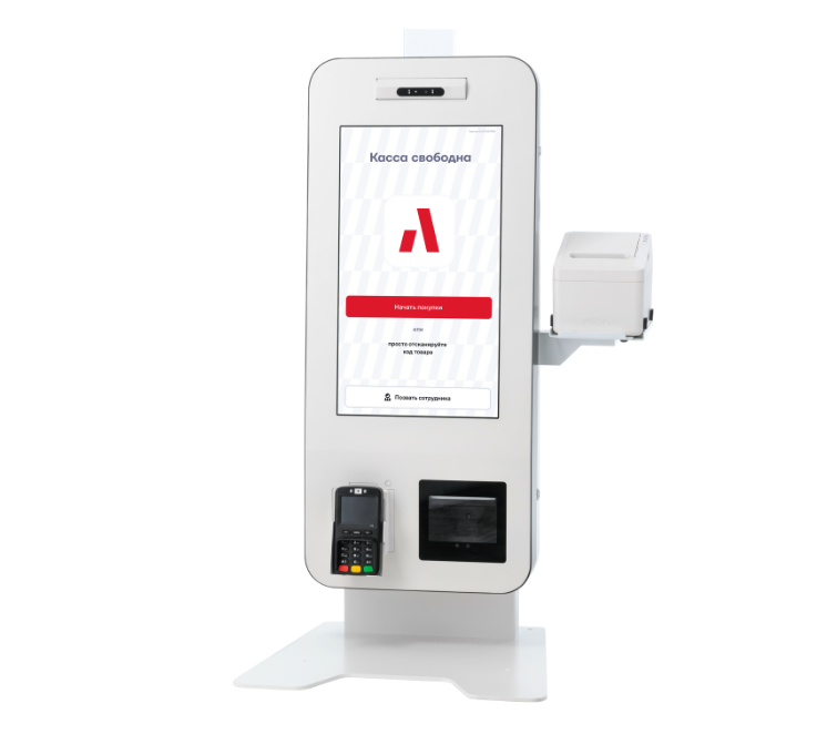 Касса самообслуживания АТОЛ КСО 3215, фронт. доступ (21,5", J6412, SSD, 4/128GB), без Wi-Fi, без ОС, Mindeo, Ind., Кр. пин-пад, Кр. ФР.