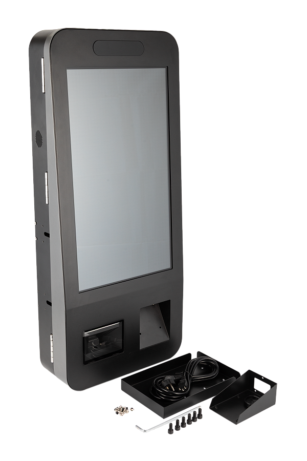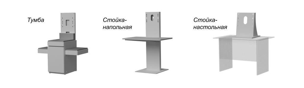 Ее можно установить на напольную, настольную стойку или тумбу. Крепления позволят расположить периферийные устройства так, чтобы соблюдался баланс удобства для покупателя и экономии пространства.