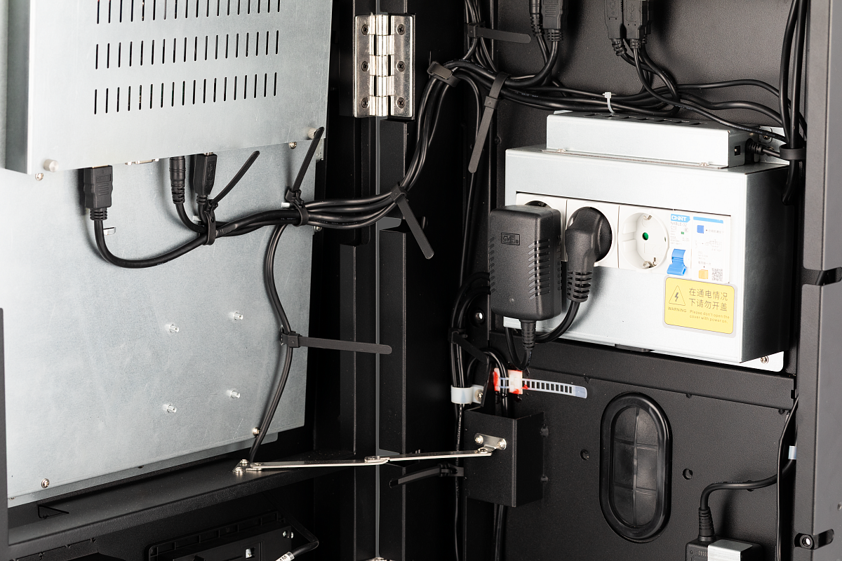 3 х розетка 220 В, 1 × питание 12 Вт, 2 × COM-порт, 4 × USB внутри, 2 × USB снаружи, 1 × HDMI, 1 × VGA, 1 × LAN, 1 × AUDIO, 1 × MIC |